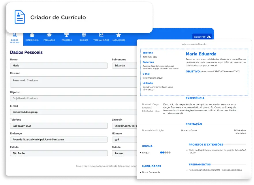 Elabore seu currículo, revise seu LinkedIn e faça testes vocacionais para tomar as melhores decisões de carreira e arrasar em processos seletivos.